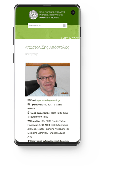 Κατασκευή Custom-Made ιστοσελίδας για τη διαχείριση των ερευνών, των ανακοινώσεων και των μαθημάτων του ΑΠΘ Τμήμα Γεωπονίας αλλά και την παρουσίαση των καθηγητών με φωτογραφία και βιογραφικό.