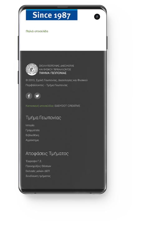 Η EASYDOT CREATIVE ανέλαβε τον σχεδιασμό και την υλοποίηση της ιστοσελίδας του Τμήματος Γεωπονίας, της Σχολής Γεωπονίας, Δασολογίας & Φυσικού Περιβάλλοντος του (ΑΡΙΣΤΟΤΕΛΕΙΟ ΠΑΝΕΠΙΣΤΗΜΙΟ ΘΕΣΣΑΛΟΝΙΚΗΣ) – ΑΠΘ Τμήμα Γεωπονίας ενός από τα ιστορικότερα Τμήματα του Πανεπιστημίου και ενός από τα καλύτερα της Ευρώπης.